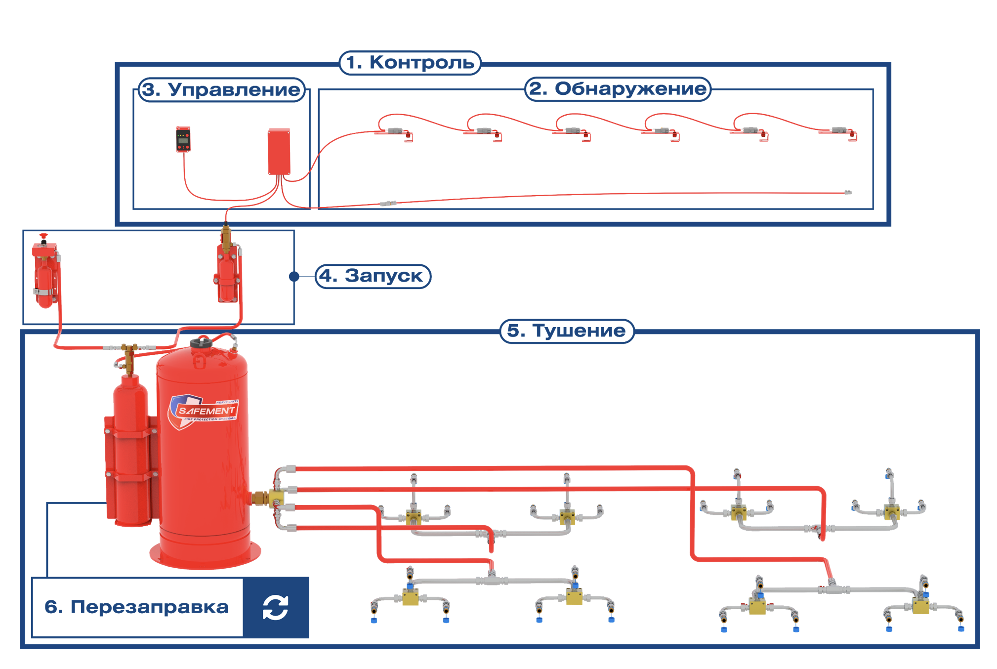 В системах SAFEMENT HEAVY-DUTY используется экологичная огнетушащая жидкость (без фтора). Температура эксплуатации от -50 ℃ до +50 ℃.